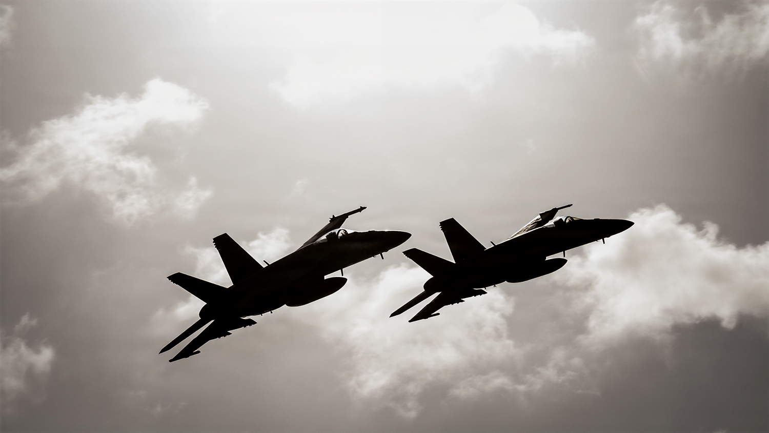 Two F/A-18E Super Hornets attached to Strike Fighter Squadron 87 fly over the world’s largest aircraft carrier, USS Gerald R. Ford (CVN 78), during an in-flight change of command in which Cmdr. Brandon Rogers relieved Cmdr. John Schnepper, Nov. 5, 2025. Gerald R. Ford, a first-in-class nuclear aircraft carrier and deployed flagship of Carrier Strike Group 12, is on a scheduled deployment in the U.S. 6th Fleet area of operations to support the warfighting effectiveness, lethality, and readiness of U.S. Naval Forces Europe-Africa, and defend U.S., Allied, and partner interests in the region. (U.S. Navy photo by Mass Communication Specialist 2nd Class Tajh Payne)
